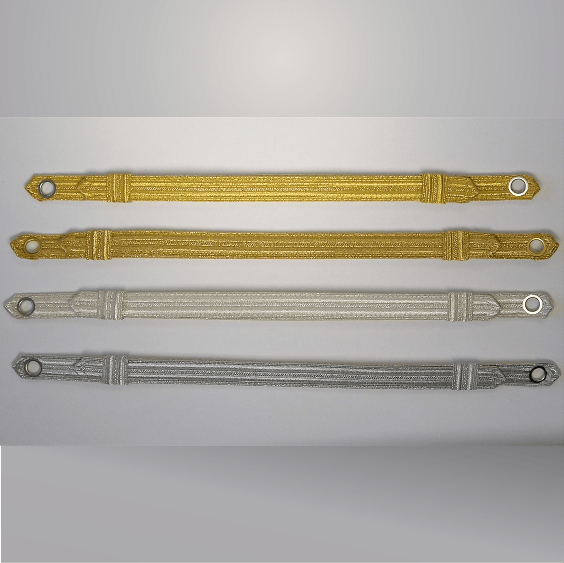 Metallic Chin Straps are made of the highest quality braid from ELC Industries – “Makers of RIce Braid.” Available in 4 color variations and 2 sized (in Light and Dark PermaGold Only). Made to military spec. Kept in Stock and available for at once...